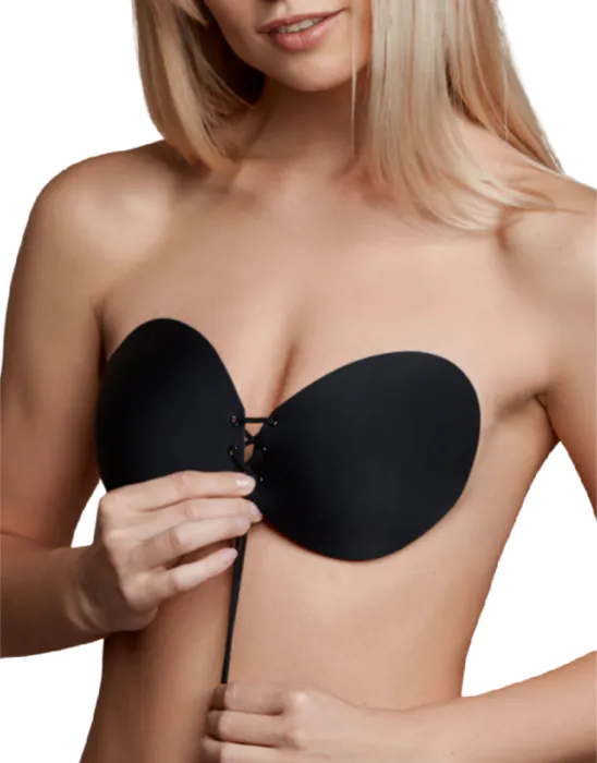 The Bye Bra Round Lace-it adhesive bra offers seamless support without straps. Great for backless outfits, it's reusable up to 25 times.