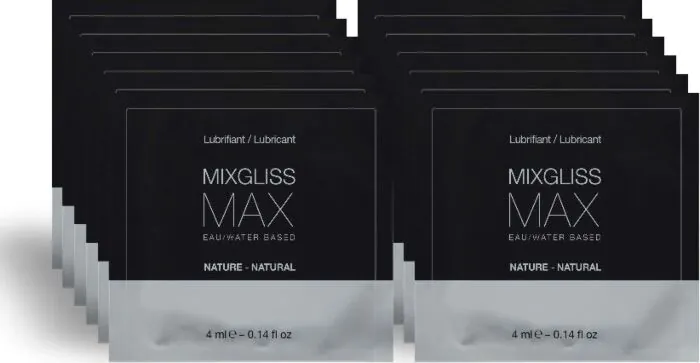 Enjoy extreme lubrication for a comfortable anal experience with MIXGLISS MAX. This water-based lubricant is designed for effective dilation, ensuring pleasurable sensations without discomfort. Its unscented formula is compatible with condoms and features a convenient single-dose packaging, making it easy to use whenever you need it.