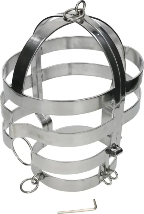 Indulge in heightened sensations and ultimate control with this Metal Hard BDSM hood. Made from high-quality steel, it features a unique hole designed for inserting toys, allowing you to explore deeper levels of submission. The sturdy collar enables secure attachment for added restraint, taking your bondage play to another level.