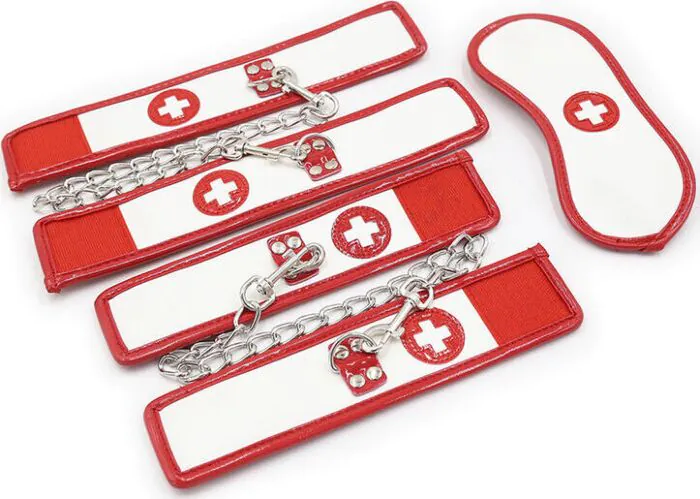 Unleash your fantasies with the OHMAMA FETISH Mini Nurse Set. Great for those exploring bondage, it includes wrist and ankle cuffs along with a mask for heightened excitement.