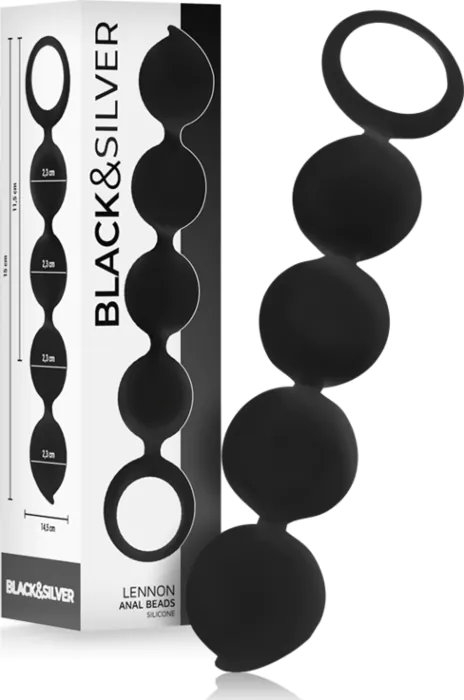These BLACK&SILVER Lennon anal beads are a beginner-friendly set made from body-safe silicone. The beads are soft to the touch and very flexible, so they follow the body's contours rather than feeling rigid. What sets them apart is the practical base/holding loop that makes insertion and removal easy and secure — handy whether you’re just starting out or using them for anal training.