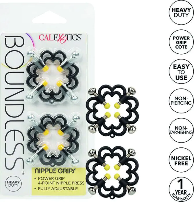 Experience intense stimulation with the Boundless nipple clamps, designed for exhilarating pleasure. The durable metal construction and adjustable 4-point screw mechanism allow you to tailor the pressure for just the right amount of thrill.