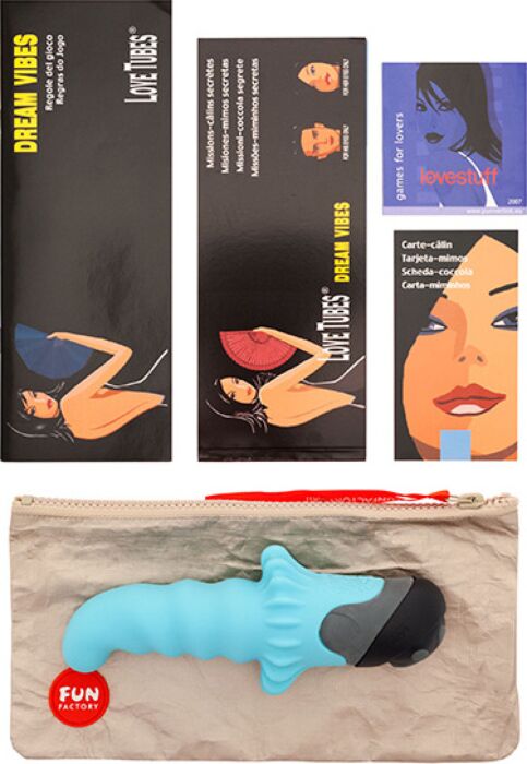Unlock a new level of intimacy with the Dream Vibes Game, featuring a submersible Stubby vibrator and 14 secret missions designed for couples looking to spice things up.