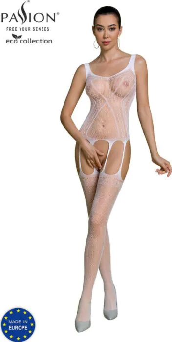 Experience the allure of the Eco Collection bodystocking. Crafted from recycled materials, it highlights feminine curves while being skin-friendly and environmentally responsible.