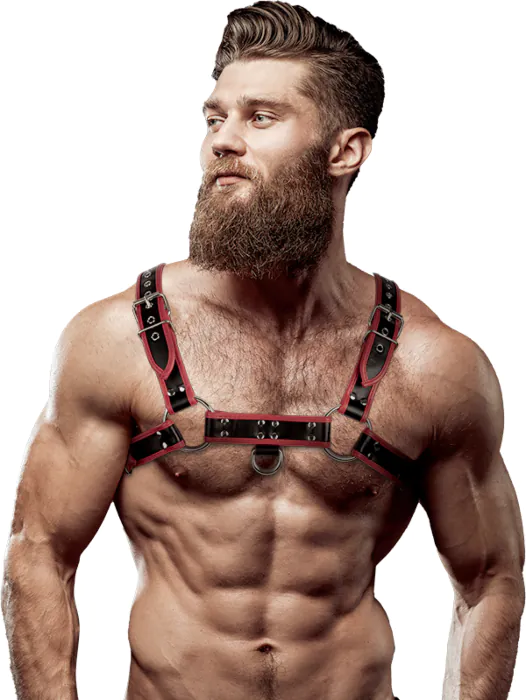 Unleash your confidence and enhance your masculine silhouette with this stunning chest harness. Crafted from adaptable vegan leather, it offers a comfortable fit that accentuates your torso beautifully. The multiple straps provide very good positioning, ensuring you look striking and feel empowered in any setting.