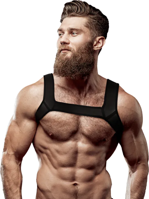 Unleash your confidence with this sexy chest harness, crafted from high-quality vegan leather for a comfortable fit. Designed to accentuate the male form, it offers a flexible sizing that adapts perfectly to your body. Multiple straps ensure optimal positioning, highlighting your attributes in a striking way.