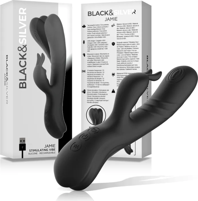 The BLACK&SILVER Jamie vibrates effectively for intense pleasure with its dual motors. Ideal for both beginners and experienced users looking for flexible G-spot stimulation. Limited by its reliance on charging time; ensure to keep it powered up for uninterrupted pleasure.