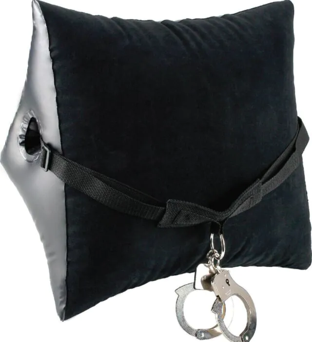 Push your boundaries with this inflatable position pillow featuring strong metal cuffs. Perfect for couples looking to add a touch of fantasy to their intimate moments.
