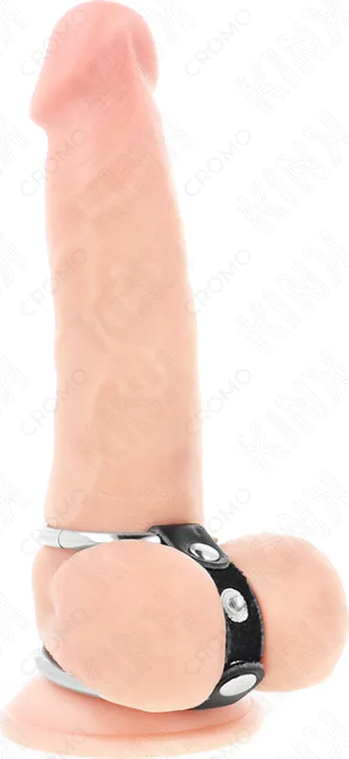 KINK Double Metal Penis Ring with Leather Nipple Clamps