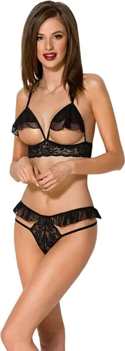 Elevate your intimate collection with the Passion Dolly Set. This alluring two-piece features an open cup bra and thong, crafted from soft tulle and lace for comfort and elegance.