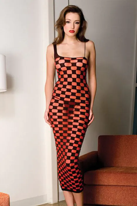 Long Dress Music Legs Red with Black Checkered Design
