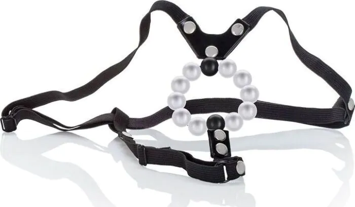 A wearable couples thong from CALEXOTICS that adds hands‑free stimulation during intercourse. The elastic ring with black plastic beads creates friction against both partners, and it’s fully adjustable so it fits most body shapes. Great if you want subtle, shared sensation without batteries or complicated set‑ups. Not for those wanting powered vibration or targeted clitoral stimulation only.