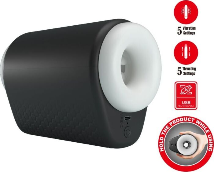 Deep satisfaction awaits with the Pretty Love Male DJ Girl masturbator, featuring a distinctive clamping design that allows you to manually squeeze the cups for enhanced pleasure. Made from soft TPR, this device boasts 5 powerful vibration modes to enhance your experience.
