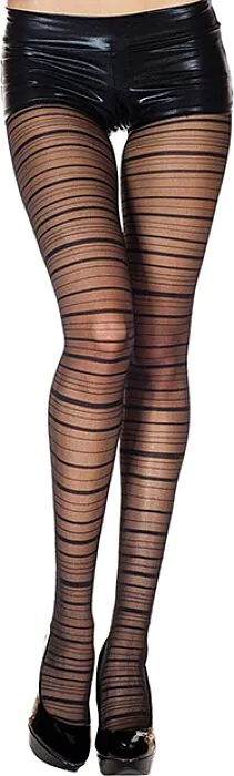 A black panty with horizontal stripes from Music Legs that adds texture beneath skirts or dresses. Good if you want a simple patterned look without loud logos or heavy decoration. A straightforward accessory for everyday wear or a night out, aimed at those who prefer understated style rather than sheer novelty items.