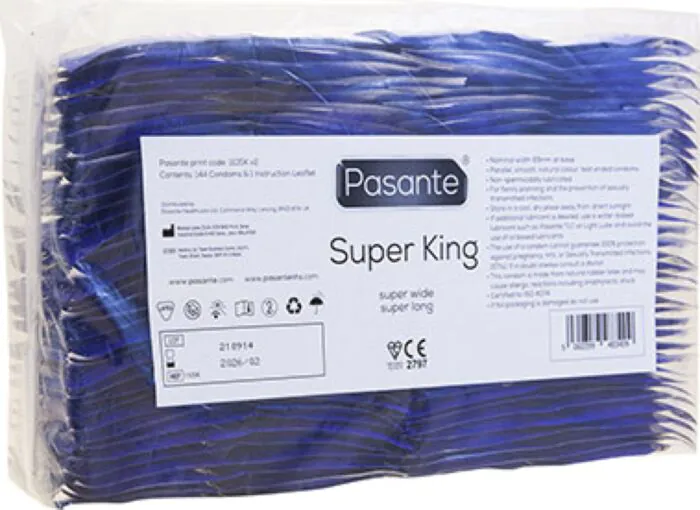 Experience ultimate comfort with Pasante Super King XXL condoms. Designed for those who need a wider fit, these condoms ensure a secure and enjoyable experience during intimate moments.