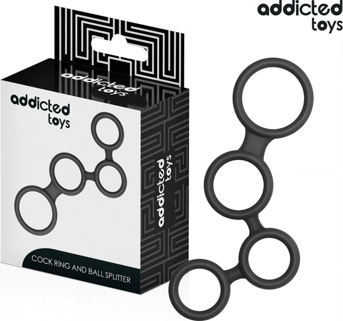 Experience enhanced sensation with the Addicted Toys penis ring featuring testicle dividers for precise stimulation. Designed for those who appreciate a firm fit during intimate moments.