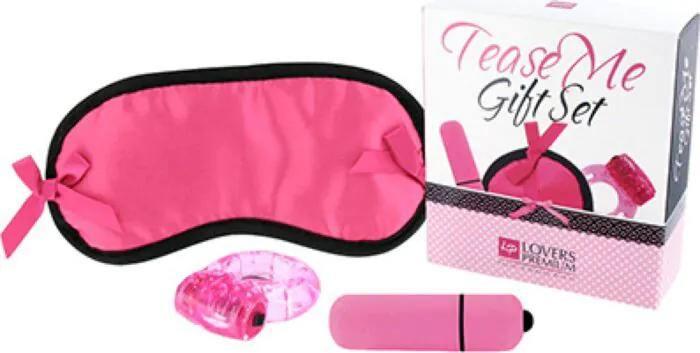 Dive into playful adventures with the Lovers Premium Tease Me Gift Set. Featuring a vibrating bullet, satin mask, and vibrating ring, this kit is designed for those looking to spice up their intimate moments.