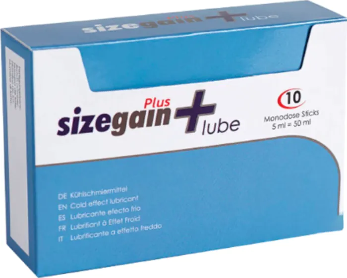 Sizegain Plus is a water-based cold-effect lubricant supplied as ten 5 ml single-dose sachets. It’s aimed at men who want a hygienic, portable boost in glans sensitivity and extra lubrication for shorter sessions or condom use. Choose this if you value discretion and travel-friendly packaging; opt for a bottle if you need larger amounts for longer play.