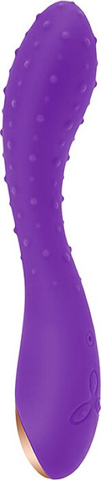 Think of this as a targeted internal vibrator designed to make contacting the G-spot easier. The Slender's curved shaft gives a clear angle for internal stimulation and the raised dots on the head add extra texture — useful when you want more sensation without moving the whole toy. The body is rigid enough to press against the right spot reliably, but finished in soft silicone so it feels pleasant against the skin.