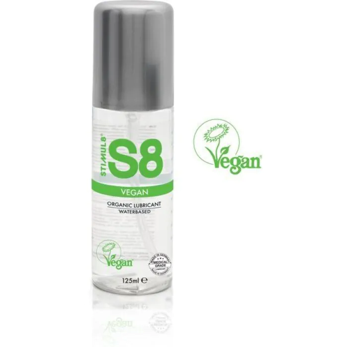 Enhance your intimate moments with STIMUL8 S8 Vegan Lubricant, a long-lasting, water-based formula that provides a silky smooth sensation without the worry of unwanted chemicals. Its completely vegan composition means it's safe and kind to your body, containing no parabens, phthalates, or harsh preservatives.