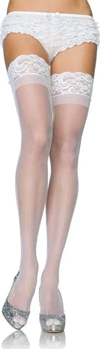 These Leg Avenue stockings combine elegance and comfort with their adjustable one-size fit. The soft nylon fabric and stylish lace detailing make them a fantastic addition to any outfit.