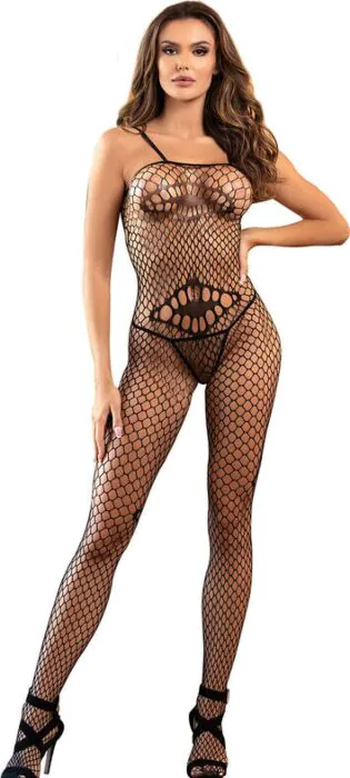 Feel irresistibly sexy in the SUBBLIME bodystocking, crafted to enhance your natural curves with its elegant fishnet design. Made from a comfortable blend of 88% nylon and 12% spandex, it offers a flexible fit that hugs your body beautifully.
